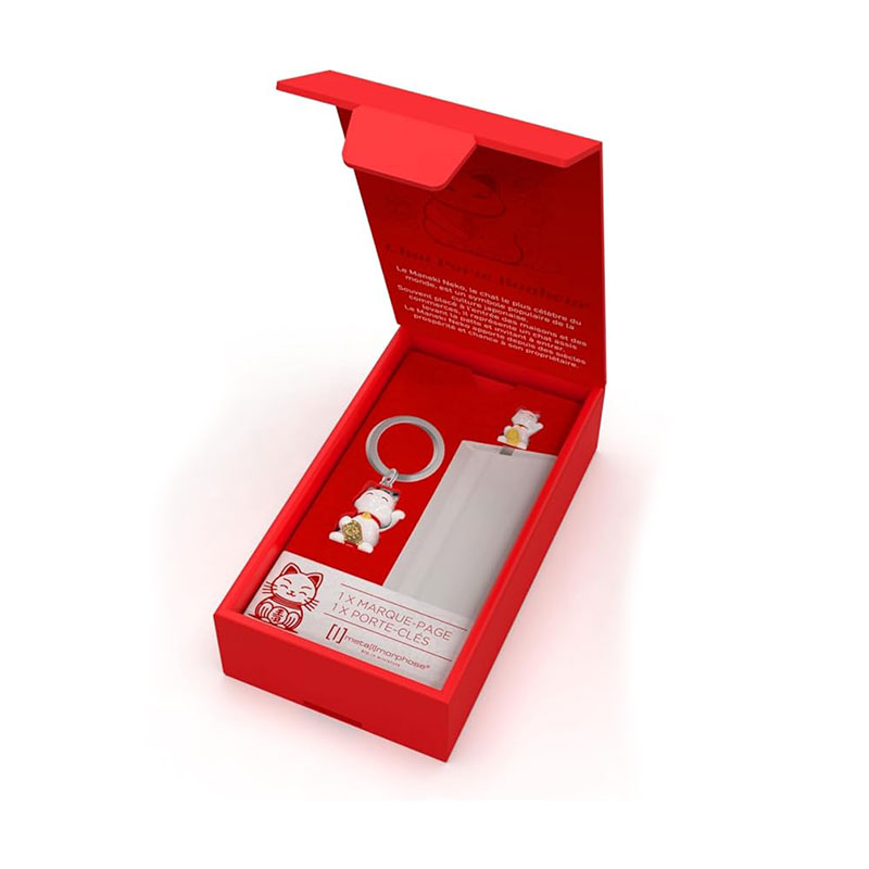 Cofanetto regalo portachiavi e segnalibri gatto portafortuna, Bianco/rosso, taglia unica